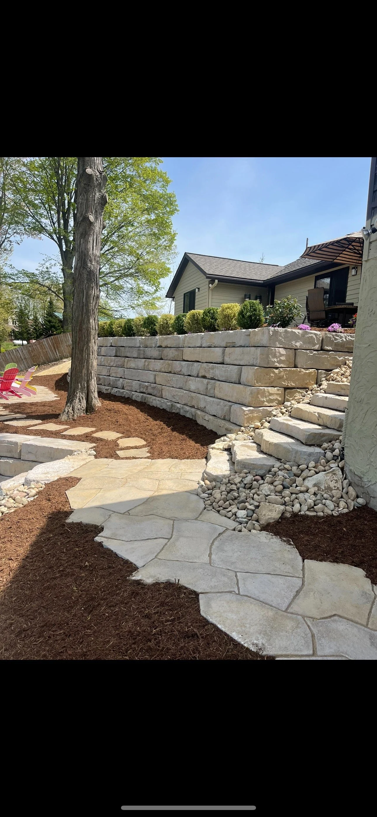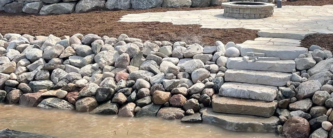 We specialize in custom hardscapes and site work, creating durable, natural-stone outdoor spaces built to last.